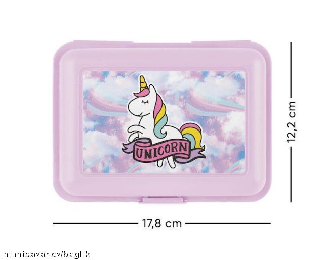 Dívčí plastový box ve fialové barvě s obrázkem jednorožce.