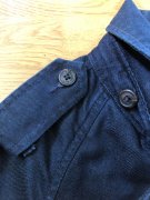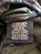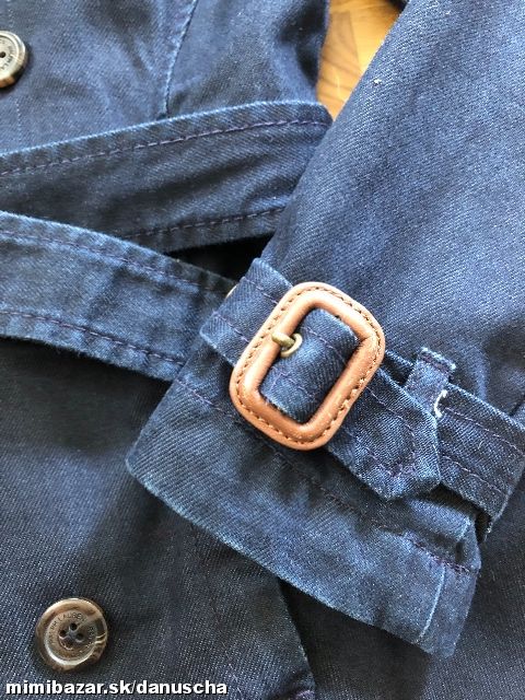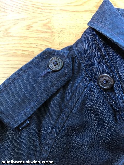 tmavomodrá nezosvetlivaná riflovina, čiastočne podšitý kockovanou látkou, kožené pravky, gombíky s logom, úžasný!!!!!!