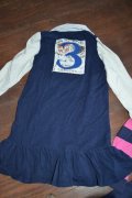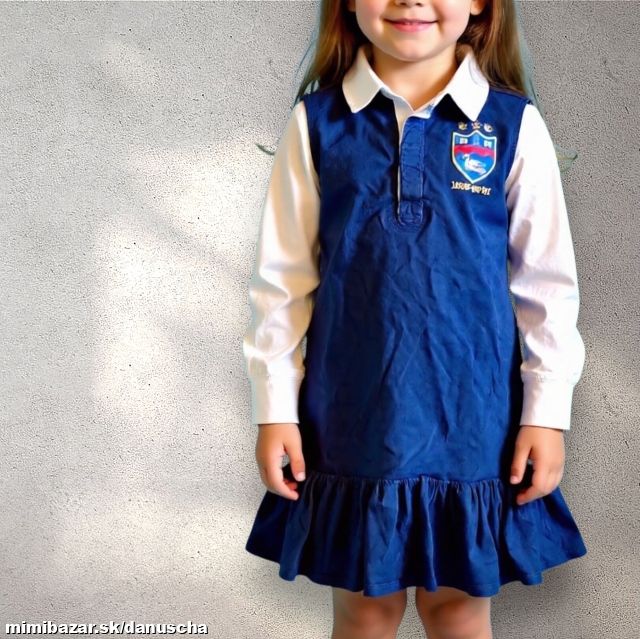 modré s bielymi rukávmi majú velikú nášivku na chrbte, dole volánik.