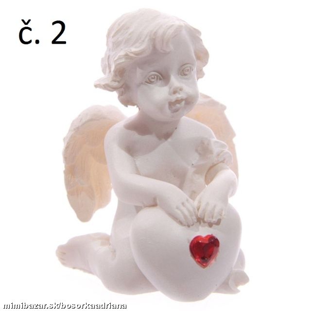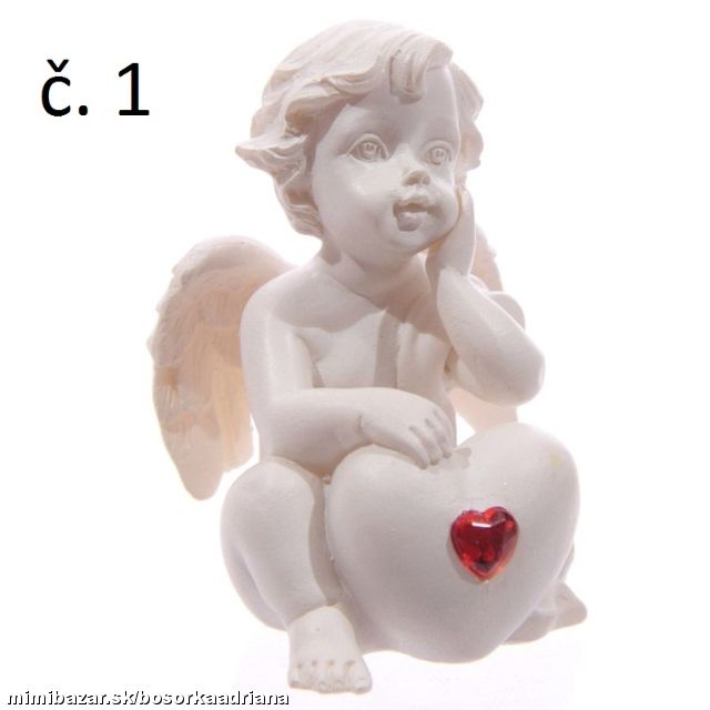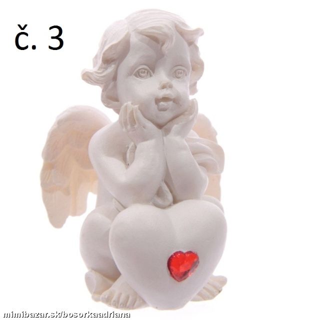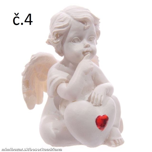 Chcete dať maličký darček-spomieku niekomu,na kom Vám záleží? Poslúži na to tento sediaci anjeliček opierajúci sa o veľké biele srdce ozdobené červeným srdcovým kamienkom :-D.Výška 5.5cm Šírka 4cm Hĺbka 4cm,materiál bielučký polyrezín + červené krištáľové brúsené sklo.Hmotnosť anjelika cca 50g.Ide o NOVÝ tovar v obmedzenom množstve,zasielam náhodný výber (alebo napíšte presnú požiadavku podľa čísla).Cena je stanovená za 1kus.Ide o NOVÝ tovar,v obmedzenom množstve a uvádzacej cene :-D