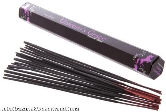 Jednorožce sú čisté bytosti prinášajúce pokoj,liečiace telo aj dušu ... keďže noc a deň,dobro aj zlo vždy existovali spolu,šťastie a beznádej,zdravie a choroba sú tiež denne prítomné v našich životoch...ak potrebujete napraviť ten nepriaznivý stav,nechajte stúpať voňavý prúžok dymu zo zapálenej magickej tyčinky.Balenie obsahuje 20ks ručne vyrábaných tyčiniek z Indie z výhradne prírodných surovín bez použitia chémie.Používajú sa tak denne,ako aj pri rituáloch a ceremóniách.Jedna tyčinka horí cca 30min.Cena je určená za 1 šesťhrannú krabičku s 20timi tyčinkami,nie za celé balenie,kde je 6krabičiek!