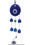 Zvonkohra je veľmi silným ochranným a aktivačným nástrojom Feng Shui, ktorý predstavuje aktivitu,pohyb a jangovú energiu.Používa sa ako ochranný a tvorivý prostriedok energie na pritiahnutie energie k vstupným dverám,na posilnenie priaznivej energie ,,cchi“.Táto zvonkohra má OČI (NAZAR),ktoré chránia pred urieknutím (zoči) stabilitu, zdravie, pokoj, bezpečie Vás i Vašej rodiny,práce,podmnikania a vytvárajú energiu dôvery.Modré zvončeky rozoznievajú tým správnym zvukom priestor,aby sa zamedzilo stagnácií energie.Materiálom je kov a sklo.Celková dĺžka 60cm.Ide o NOVÝ tovar,vhodný aj ako darček,trebárs ku kolaudácii :-D.Zaveste tento amulet v severovýchodnom sektore vašej kancelárie, obývačky alebo pracovne, aby ste ho ochránili pred žiarlivosťou.