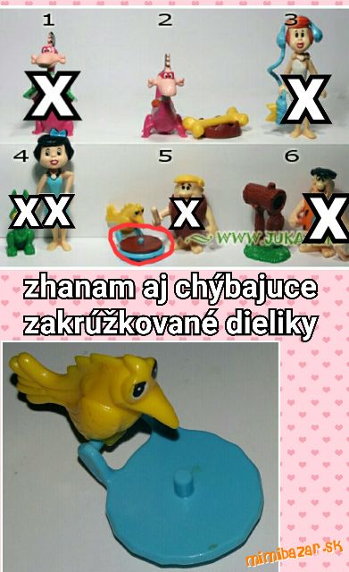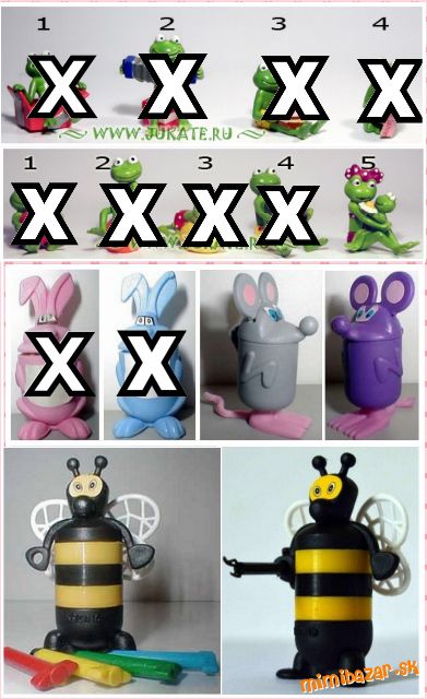 Predám alebo vymením figúrky na úvodnom obrázku za chýbajúce neprečiarknuté na ostatných obrázkoch kinderká sú nehrané aj s papierikom, vybalené len na fotenie taktiež zhánam chýbajuce náhradné diely,pošt.dopor.alebo obyčajné 2.70 na vlastné riziko