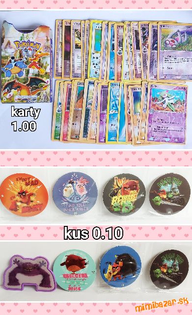 kartičky,kus 0.10 centov alebo vymením 3 kusy za 1 kinderko,neotvorené balíčky 1= 1 kinder, alebo ako je napísané,ponúknite, písať mail,na telefon nereaguje,pošt.doporučené,obyč. na vlastné riziko 3.00 ,alebo cez PACKETU za 3.40