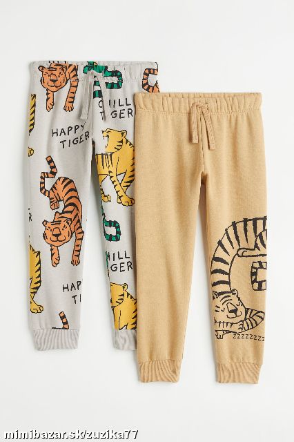Nenosené teplákové nohavice z bavlnenej zmesi s vnútornou stranou z mäkkého česaného materiálu. Zakrytá guma a tunelové sťahovanie v páse pre ľahké obliekanie. Rebrované manžety. Z 2 packu