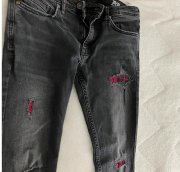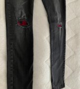 predám, pekné záplatové rifle ,super stav ,dl.100 cm , pás 40x2 cm , boky 44x2 cm , mierne elastické, veľkosť je písaná 29-32