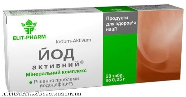 Aktívny jód sa používa na prevenciu rozvoja hypertyreózy,strumy;so zápalovými ochoreniami dýchacích ciest,astmou;s očnými chorobami (katarakta,zakalenie rohovky a sklovca, krvácanie do očnej membrány),ako aj s plesňovými infekciami spojovky a rohovky.Dôležitou vlastnosťou komplexu aktívneho jódu je jeho schopnosť zabrániť hromadeniu rádioaktívneho jódu v štítnej žľaze a chrániť ju pred účinkami žiarenia.Odporúča sa na prevenciu ochorení štítnej žľazy;zlepšiť duševný a fyzický vývoj detí;osoby,kt.žijú v environmentálne nepriaznivých podmienkach alebo boli vystavené žiareniu.Prejavy nedostatku:podráždenosť,depresia,ospalosť,letargia,zábudlivosť,poruchy pamäti a pozornosti,znížená inteligencia,časté bolesti hlavy,ateroskleróza,arytmia,anémia,infekcie,osteochondróza,opuchy očí,PMS,neplodnosť,...