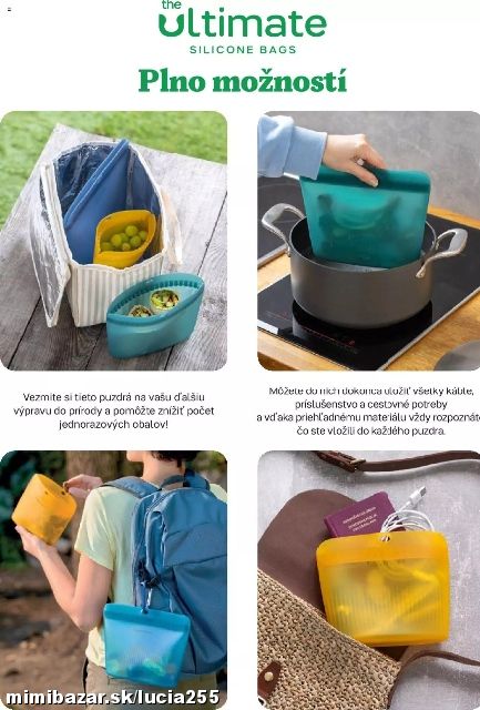 Dajte zbohom jednorazovým obalom. Vďaka silikónovým púzdram budete môcť uskladňovať všetko čo potrebujete, dokonca aj tekutiny ekologickym spôsobom. Vďaka bezpečnému uzatvoreniu sa nebudete musieť obávať, že vám obsah vrecka vytečie do tašky. Po použití stačí púzdro jednoducho opláchnuť vodou alebo dať do umývačky riadu, nechať uschnúť a je pripravený na ďalšie použitie. Silikónové puzdrá sú skvelým doplnkom do kuchyne, ktoré chránia potraviny aj životné prostredie.