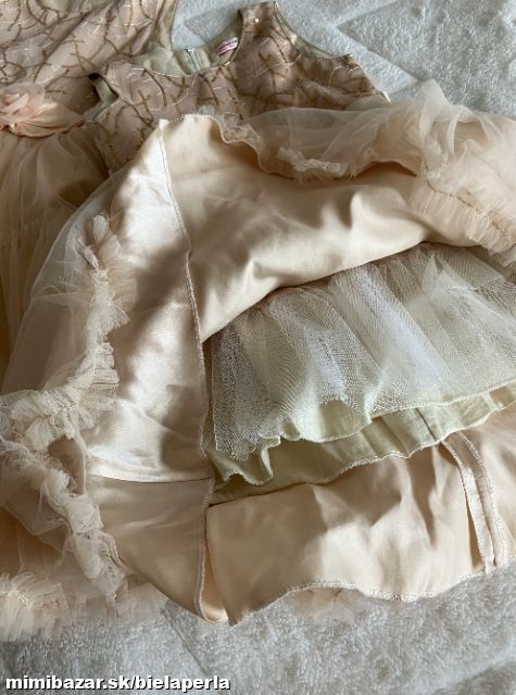 predám pekné šaty ,super stav 1x oblečené , vela spodničiek , miere siat na 6 rokov dl 68 cm ,od pazuchy po pazuchu 30x2 cm ,pás 30x2 cm