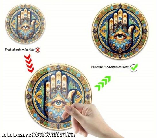Uzdravenie: tele,vzťahov,energií,pokoj,šťastie,nádej,riešenia ciest (životných,pracovných či lásky ako takej) ...to všetko a ešte viac dokážete riešiť pomocou mandál.Najlepšie je ich umiestniť na okno (aby cez ne prechádzalo slnko) alebo do jeho blízkost.a zavesiť tam,kde chceme uskutočniť nápravu.Sú priesvitné,plastové,takže umývanie bez problémov.Ak sa Vám stratila zo života energia,inšpirácia,ak sa cítite vyhorení,unavení...skrátka,ako Vás prevalcoval parný valec života,možno potrebujete práve energetickú ochranu HAMSY (Božej ruky) pre urieknutím,zlom,ohováraním,neprajnosťou a závisťou.Toto riešenie je jednoduché,nič nemusíte lepiť,viete túto mandalu preniesť (napr.ak idete na dovolenku,sťahujete sa,ak máte pocit,že v práci je to horšie ako doma...a pod).Ľahko sa udržiava,je z plastu,bežne sa umyje čistou vodou od prachu a nečistôt,farby nevyblednú.Ide o NOVÝ tovar,vhodný aj ako celoročný darček.JEDINÝ kus v predajni,tak neváhajte s objednaním!