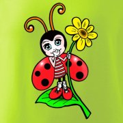 Autorská kresba Lienka- potlač, detské tričko materiál 100% bavlna Single jersey, Adler. Farba trička limetková. Skladom veľkosť 110cm/4roky. Na objednávku aj iné veľkosti 122/6r, 134/8r, 146/10, 158/12.