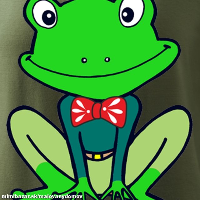 Autorská kresba Žaba - potlač, detské tričko materiál 100% bavlna Single jersey, Adler. Farba trička khaki. Skladom veľkosť 110cm/4roky. Na objednávku aj iné veľkosti 110/4roky,122/6rokov, 134/8rokov, 146/10rokov, 158/12rokov.