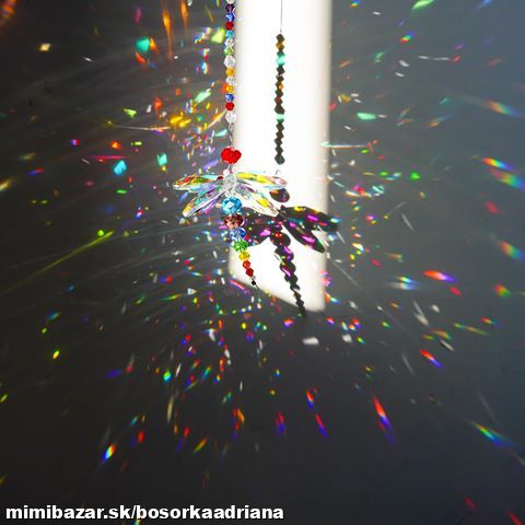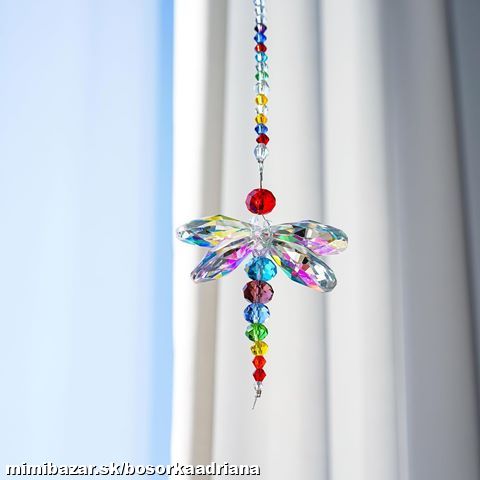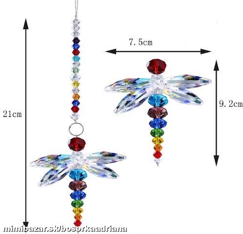 Či už veríte na Feng šuei alebo nie,je pravdou,že v priestoroch,kde je správne rozmiestnenie energií sa cítime pohodovo,nebývame chorí,dokážeme viac s menším stresom.Tak prečo si nespraviť taký priestor kdekoľvek? doma v práci,kancelárii,obchode,masážnom či relaxačnom salóne...všade vieme vniesť pohodu,pocit ľahkosti a zároveň úspechu.Závesné krištáľové slnečné ozdoby s kúzlom vážky tomu môžu dopomôcť a nemusí to byť ani extrémne drahé.Dokonca z tejto krásnej krištálovej vážky viete spraviť štýlový darček po celý rok,nielen na Vianoce...Vysoko kvalitné guľôčkové hranoly a korálky vyrobené z krištáľu triedy K9 vytvoria trblietavé a liate dúhy na slnku.Preto je vhodné vážku zavesiť na okno či do jeho blízkosti.Jednoduché zavesenie kamkoľvek sa vám páči:veranda,okno,dvor, strom,záhrada atď.Balené v darčekovom vrecúšku.