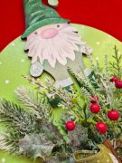 Ručne maľovaná drevená dekorácia, dozdobená umelými vetvičkami a stuhou, na zavesenie na stenu alebo dvere. Vhodné do interiéru. Nevystavujte priamemu dažďu/snehu. Veľkosť 28cm na šírku a 37,5 cm na výšku.