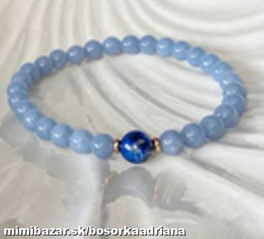 Akvamarín priezračný ako more ...symbolizuje odvahu, upokojuje myseľ, zmierňuje agresivitu,povzbudzuje nás k odvahe,zaháňa strach,obavy a stres.Pomáha duši, aby sa stala miestom nesebeckej lásky a liečivej sily.Pozitívne pôsobí na vyjadrovanie, komunikáciu,napomáha k tvorivému a slobodnému vyjadreniu sa.Prečisťuje myšlienky, podporuje k pocitu vnútornej slobody a zvyšuje schopnosť intuície.Liečivé účinky: pomáha pri pľúcnych chorobách,ochoreniach dýchacích ciest,kožných alergiách,sennej nádche,reguluje činnosť štítnej žľazy (vtedy sa prikladá sa na oblasť na krku alebo sa nosí na krátkej retiazke).Pre zmiernenie kožných alergií vložte na noc do čistej vody a ráno sa vyberte.Vodný výluh z akvamarínu potom pite počas dňa v malých dúškoch, alebo ním môžete omývať problematické miesto.Takisto pomáha upokojiť unavené oči a je prospešný pri krátkozrakosti (položte akvamarín na čelo medzi obočím (tretie oko) a ďalšie dva kamienky akvamarínu na očné viečka).Pri problémoch s močovým mechúrom, žalúdkom a ľadvinami priložiť na solar plesus,pri bolestiach šije na zátylok,pri bolestivých nervoch na postihnuté miesta.Znamenia: Ryby,Váhy,Vodnár,Blíženci. Čakry: hrdelná čakra.Krajina pôvodu Brazília.Uprostred náramku je centrálna gulička LAPIS LAZULI na zvýšenie vibrácií a stabilizáciu 3ho oka.V nenatiahnutom stave 18cm,pohodlne sa roztiahne (okolo 22cm).Veľkosť guličiek 6mm+8mm Lapis,na gumičke,dodávané v darčekovom vrecúšku,NOVÝ tovar vhodný aj ako darček :-D