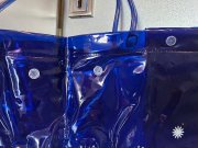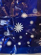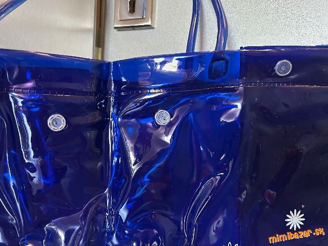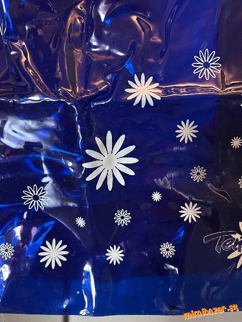 veľká plážová taška modrej farby s bielymi kvietkami, plastová, pevná, so zapínamím na cvočky. Nová