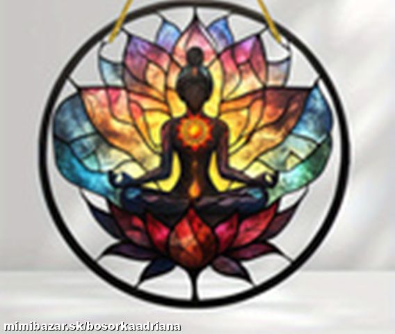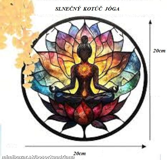 Čakrová mandalka s motívom základná poloha jóga NIE je nálepka,ale SLNEČNÝ KOTÚČ,ktorý sa dáva na okno,dvere alebo blízko nich,aby cezeň prechádzalo slnečné svetlo a tým mohlo meniť energie v priestore,miestnosti...Slnečné a čakrové mandaly sú malé inšpiratívne drahokamy,ktoré svojimi úžasnými farbami prinášajú mier a harmóniu do Vášho života.Na okno či dvere sa dávajú aby slnečné lúče prechádzajúce mandalou a pozitívne naladili a roztancovali miestnosť nádhernými farebnými svetielkami.Rozmer mandaly je v priemere 20cm.Materiálom farebné PVC s fóliou,súčasťou je šnúrka na zavesenie.Ide o NOVÝ tovar,vhodný aj ako darček nielen domov,ale aj do jógového,relaxačného,masážneho či kozmetického salóna :-D