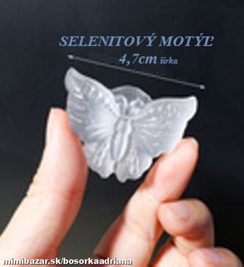 Selenit je veľmi obľúbený kryštál(je nazývaný Mesačný kameň) a preto Vám chcem ponúknuť hmatku z tohto fascinujúceho materiálu vo forme motýľa.V minulosti sa z neho vyrábali aj okná v časoch,keď sklo bolo vzácne a používalo sa veľmi málo.Selenit má veľa pozitívnych vlastností,čo z neho robí kameň,ktorý využívajú najmä milovníci litoterapie.Napríklad zlepšuje kvalitu spánku a čistí vzduch okolo nás,dodáva telu energiu.Udržuje pokoj a mier,odstraňuje zmätok v duši,pomáha riešiť problémy,zamedzuje prístupu vonkajších vplyvov.Vyjavuje všetky problémy, ktorých následky na nás stále pôsobia a ukazuje akým spôsobom je ich najlepšie vyriešiť.Je výborný pre duchovnú prácu. Podporuje telepatiu.Upokojuje zmätené myšlienky a prevedie nás náročnými obdobiami v živote.Dodáva veľké množstvo energie, narovnáva chrbticu a lieči jej problémy čiže napr. skoliózu, kyfózu a pod...Neutralizuje pôsobenie voľných radikálov v tele a škodlivé účinky amalgánových zubných výplní.Odporúča sa pre matky,ktoré koja svoje detičky.Čistiť by sa mal bez použitia vody,keďže ho rozpúšťa,takže buď na hematite či ametyste alebo v dyme z niektorého kadidla (myrha,olibanum,šalvia biela...) NEČISTIŤ vodou (je to odroda sádrovca,preto ho voda rozpúšťa).Teraz ho môžete mať aj ako hmatku po celý deň so sebou...Ide o NOVÝ tovar,po prvýkrát v ponuke!Selenit je spojený so srdcovou čakrou, Veľkosť je cca 4,7cm, hmotnosť 16-18g,ručná práca,dodávaný v darčekovom vrecúšku.