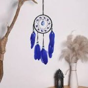 Lapač snov NAZAR 42 x 16cm modré pierka