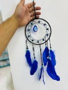 lapač snov je tradičný predmet,ktorý pôvodne pochádza od pôvodných obyvateľov S.Ameriky.Je to ručne vyrábané umelecké dielo s osobitným významom a funkciou. Kruh lapača snov predstavuje kruh života.Sieť vo vnútri symbolizuje sieť života,kde je každý bod siete spojený.Perie sa považuje za symbol vzduchu,dýchania.Pre mnohé domorodé kultúry majú lapače snov duchovný význam a používajú sa na ochranu pred negatívnymi vplyvmi a na podporu pozitívnej energie.Sú vnímané ako mocné amulety a talizmany. Dnes sú lapače snov často vnímané ako dekoratívne predmety a ľudia rôznych kultúr a prostredí ich používajú ako šperky alebo ako bytové dekorácie.Pri používaní lapača snov je však dôležité mať na pamäti rešpektujúc pôvod a význam.Tento má priemer 16 cm a je dlhý cca 42cm.Hmotnosť cca 50g,uprostred neho sa nachádza NAZAR (ochranné oko).Ide o NOVÝ nepoužitý tovar,vhodný aj ako darček po celý rok :-D