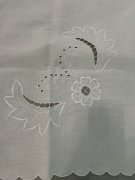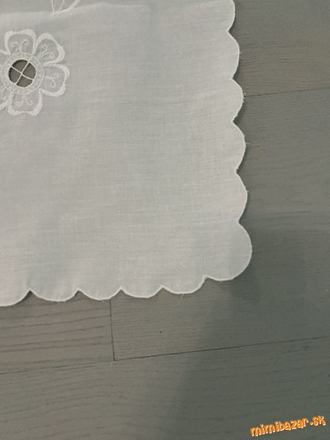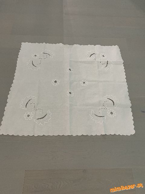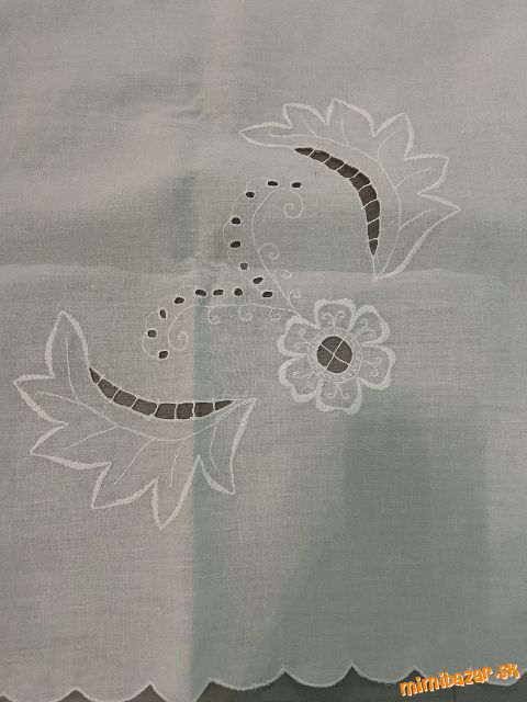 obrus nepoužívaný, iba skladovaný, vyšívané na bielom plátne, výrezovou technikou- bez poškodenia