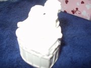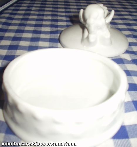 Porcelánová šperkovnička je zdobená motívom kvetinových ornamentov a ležiacim anjelikom, ktorý Vám postráži prstienky, náušničky či iné cennosti :-)). Zle sa to fotí kvôli farbe a materiálu - v skutočnosti je o 200% krajšia !!! priemer 8,5cm, výška 8,5 - 9cm
