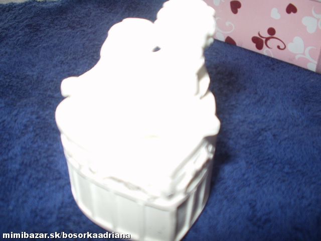 Ak hľadáte malý darček pre milovanú osôbku,neváhajte nad šperkovničkou s anjelikom ... každá žena od 1roka do 99tich má čo do nej dať :-D ...náušničky,prstienky,sponky,...niekedy sú menšie nádobky vhodnejšie,lebo môžeme mať roztriedené VŠETKO ...Máte na výber: keramickú s ležiacim anjelikom,alebo polyrezínovú v tvrare srdiečka so sediacim anjelikom