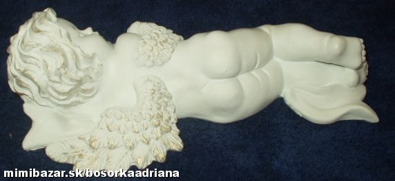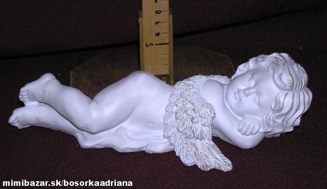 Poznáte niečo krajšie, ako spiace dieťa ? Snáď len anjel sa mu vyrovná ... Či ho položíte vedľa detskej postieľky, Vašej postele, medzi kvety, alebo aj von (na terasu, parapet, deťom k ihrisku,...) bude milým príjemným spoločníkom, ktorý prinesie k Vám lásku, pokoj a kľud ... Keďže je z polyresinu, znáša aj teploty do -30C a tak ho nemusíte v zime schovávať. Má taký "starožitný vzhľad", zlatú patinu na bielom podklade. Ide o NOVY TOVAR za veľkoobchodné ceny ... je možné dodať aj viac kusov.