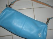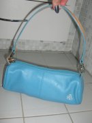žiadna látka, ale kvalitná koža! nádhernej modrej farby, logo vyšité bielou niťou a na remienku a koncovkách zipsov kombinovaná s hnedou kožou - pozrite detailné foto, je úžasná!!!! kúpená v USA, takú tu nezoženiete!!!