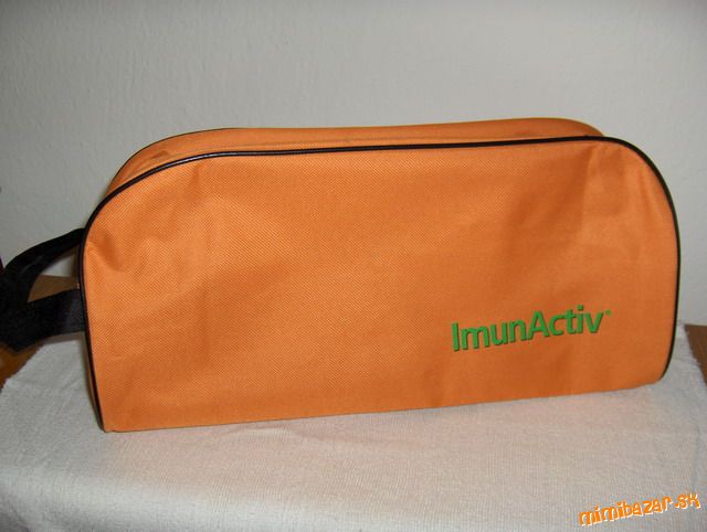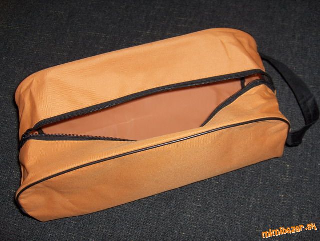 taška zvláštneho oblúkového tvaru na zips, s uškom na bočnej strane, materiál niečo ako impregnované plátno, zaujímavá :-)
