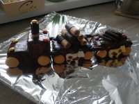 ![]() Torta pre 1. narodeninyPOTREBNÉ PRÍSADY 1 balicek marina keksov (mozu byt piskoty, alebo iny keksik, podla toho co vase babatko papa), 1 jablko, 1/2 bananu, 1 kysla smotana, stipka praskoveho cukru POSTUP PRÍPRAVY Torticka je mala, len pre krpca, dospelym som robila iny kolac :) kedze sa maly narodil skor a zodpovedal tak 9 mesiacom, bola som s tortickou skromnejsia a nic extra do nej nedavala. Formu na tortu som urobila z kelimku od rastlinneho masla Veto, zrezat spodok a mate krasnu formicku. Na zaciatku si pripravme vsetko potrebne - najprv si rozdrvte v rukach keksy na uplny prasok, rozdelte si ho na tretiny, potom osupat jablko, vykrojit stred a spolu s polovicou bananu rozmixovat na pyre. Smotanu rozmiesat so stipkou (naozaj len medzi prsty) cukru a mozeme zacat vrstvit. 1/3 keksov vysypeme na dno fo formicky, na to navrstvime polovicu smotany, na to opat 1/3 keksikov, na nu jablkovo-bananove pyre, na to opat 1/3 drvenych keksov a nakoniec druhu polovicu smotany. Nechame cez noc postat v chladnicke. Na druhy den dame dole formicku a dozdobime uz podla chuti, ja som dala sviecku na sfuknutie :) Ja som si tortu vytiahla tak 3h skor, aby som ju nemala taku studenu, ked bude maly papat. Prajem dobru chut. OBRÁZKOVÝ POSTUP S VEĽKÝMI OBRÁZKAMI OBRÁZKOVÝ POSTUP S MALÝMI NÁHĽADMI ULOŽIŤ RECEPT | VYTISKNÚŤ RECEPT | Lucia P. (fovea) ID 99795 | ďalšie recepty KOMENTÁRE (0) | PRIDAŤ KOMENTÁR |