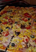 PIZZA TÁ NAJLEPŠIAPOTREBNÉ PRÍSADY CESTO:600 g Hladká múka,polka droždia,štipka cukru,soľ,0,5 deci oleja,1 dcl mlieko,2 dcl vody. Omáčka na pizzu (z pizzerie) :paradajkový pretlak,oregano,roztlačený cesnak podľa chuti,soľ,olej,bazalka,korenie na pizzu. POSTUP PRÍPRAVY Lepšiu pizzu som ešte nejedla mne osobne chutí viac ako niekde v reštaurácii.A z cesta vyjdu 3 plechy pizze .Takže na začiatok si urobíme kvások z teplého mlieka ,trošku cukru a droždia.Do misy si dáme múku,olej ,trochu soli a vykysnutý kvások.Miesime cesto a ak sa Vám zdá príliš tuhé prilejte trochu horúcej vody.Cesto si necháme nakysnúť a potom si ho rozdelíme na 3 časti ktoré si vyvaľkáme v tvare plechu na pol centimetra predtým ako si cesto dáme na plech potrieme plech olejom.Pripravíme si omáčku do paradajkového pretlaku si roztlačíme cesnak,pridáme soľ,oregano,bazalku,korenie na pizzu,trochu oleja.Touto omáčkou potrieme cesto dáme naň to čo nám chutí kukuričku,šampióny,salámu,klobásu,syr to už je na Vás.Pečieme pri 250°C 10-15 min.Ako som písala 3 plechy máte isté a pizza je bombová cesto je tenké chutné nerozpadáva sa ani po dvoch dňoch v chladničke aj keď dva dni Vám pizza neostane určite :Dtreba ju skúsiť ;) ULOŽIŤ RECEPT | VYTISKNÚŤ RECEPT | (recept si oblúbilo 12 návštěvníkov) Lulu M. (Makanova) ID 311840 | ďalšie recepty KOMENTÁRE (1) posledné: 12.5.2015, 10:40 | PRIDAŤ KOMENTÁR |