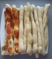 ![]() Pizza tyčinky alebo štangle ani nie za 1€POTREBNÉ PRÍSADY 1droždie , asi 200ml vody ,1 kg hladkej múky , 2 lyžice soli , 2lyžice olivového oleja . Kečup , pizza korenie na posypanie . POSTUP PRÍPRAVY Rýchle tyčinky za pár centov vyšlo mi asi 25 ks . Príprava cca 1,5hod aj s kysnutím.\r\n1droždie dáme do pohára s teplo vodou asi 200ml napučať . Do misy vysypeme 1 kg hladkej múky , 2 lyžice soli , 2lyžice olivového oleja . Kvások vylejeme do múky pridáme cca 200 až 300mlml teplej vody a vymiešame , v prípade že je cesto veľmi tuhé prilejeme vodu podľa potreby - cesto by malo byť stredne tuhé . Necháme vykysnúť asi 45 min , premiešame a necháme kysnúť ešte 15 minút. cesto dáme na pomúčenú dosku , nakrájame na menšie kúsky a ušúľame na dĺžku plechu , poukladáme na papier na pečenie . rúru vyhrejeme na 220°C , pečieme cca 15 - 20 minút. Potrieť ich môžeme kečupom a pizza korením , syrom ..... Ja po upečení potriem olivovým olejom zmiešaným so soľou. ULOŽIŤ RECEPT | VYTISKNÚŤ RECEPT | (recept si oblúbilo 5 návštěvníkov) Helena B. (pivnakozmetika) ID 191611 | ďalšie recepty KOMENTÁRE (1) posledné: 20.6.2016, 14:19 | PRIDAŤ KOMENTÁR |