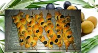 ![]() Olivové špirálky...POTREBNÉ PRÍSADY 150g hladkej múky, 150g polohrubej múky, 1 Čl kryštálového cukru, 1 ČL soli, 1/2 kocky droždia, 1/2 Čl kypriaceho prášku, 100ml oleja, 100ml teplého mlieka, 2 strúčiky cesnaku, vajíčko na potretie, zelené a čierne olivy, špajdle, hrubozrnná soľ POSTUP PRÍPRAVY Receptík je z internetu, ale je tak báječný, že sa podelím... V teplom mlieku si rozmiešame droždie a cukor, necháme vzísť kvások. Múky zmiešame spolu s kypriacim práškom a soľou, pridáme prelisovaný cesnak, vykysnutý kvások a olej. Vymiesime redšie cesto, ktoré necháme hodinku prikryté kysnúť. Potom ho vyklopíme na dosku posypanú múkou a rozdelíme na 10 častí. Na špajdle napichneme olivy /striedavo raz zelenú, raz čiernu - po 6 kúskov na jednu špajdľu/. Z každej časti cesta vyvaľkáme na pomúčenej doske šúľok, ktorý obmotáme okolo olív na špajdli a potom položíme na plech vystlaný papierom na pečenie ďalej od seba. Potrieme ich vajíčkom a posypeme soľou. Pečieme na 200°C, asi 15-20 minút, dozlata. ULOŽIŤ RECEPT | VYTISKNÚŤ RECEPT | (recept si oblúbili 4 návštěvníci) Maria P. (teleflex) ID 105501 | ďalšie recepty KOMENTÁRE (8) posledné: 2.6.2018, 13:26 | PRIDAŤ KOMENTÁR |