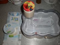 ![]() Domáci sójový jogurtPOTREBNÉ PRÍSADY 1 l sójového mlieka, 1 sójový jogurt bez príchute - natur POSTUP PRÍPRAVY Mlieko som zohriala v mikrovlnke 2 min. , aby bolo vlažné, do každej fľaštičky som dala za lyžičku jogurtu ( celý jogurt som rozdelila do fľaštičiek, tak je to aj troška viac ako za lyžičku). Do každej fľašky som doliala mlieko doplna, zavrela a pretrepala. Dala som do jogurtovača na stupeň 2 ( toto je starší typ, stupeň 1 je na jogurtové mlieko a stupeň 2 na jogurty) a po 4 hodinách vypla a nechala samé vychladnúť, potom som ich preložila do chladničky. Z tohto množstva som spravila 6 plných výživových fľaštičiek ( tie originálne z jogurtovača sa postrácali) . Ešte teplé boli jogurty riedke ako mlieko, ale v chladničke zhustli a teraz sú úplne super ( konzistencia ako klasický sójový jogurt z obchodu, ale chuťovo lepšie). Pri ďalšom "jogurtovaní použijem 1l sójového mlieka a asi pol fľaštičky tohto urobeného jogurtu. A teraz k nákladom - mlieko stálo 1,59€ ( je aj lacnejšia verzia, toto má pridané calcium) jogurt stál 0,86€, takže dokopy náklady na 6 fľašiek jogurtu sú 2,45€, ak nerátam spotrebovanú elektrinu. ULOŽIŤ RECEPT | VYTISKNÚŤ RECEPT | (recept si oblúbili 2 návštěvníci) Paulína F. (paulina156) ID 198223 | ďalšie recepty KOMENTÁRE (0) | PRIDAŤ KOMENTÁR |